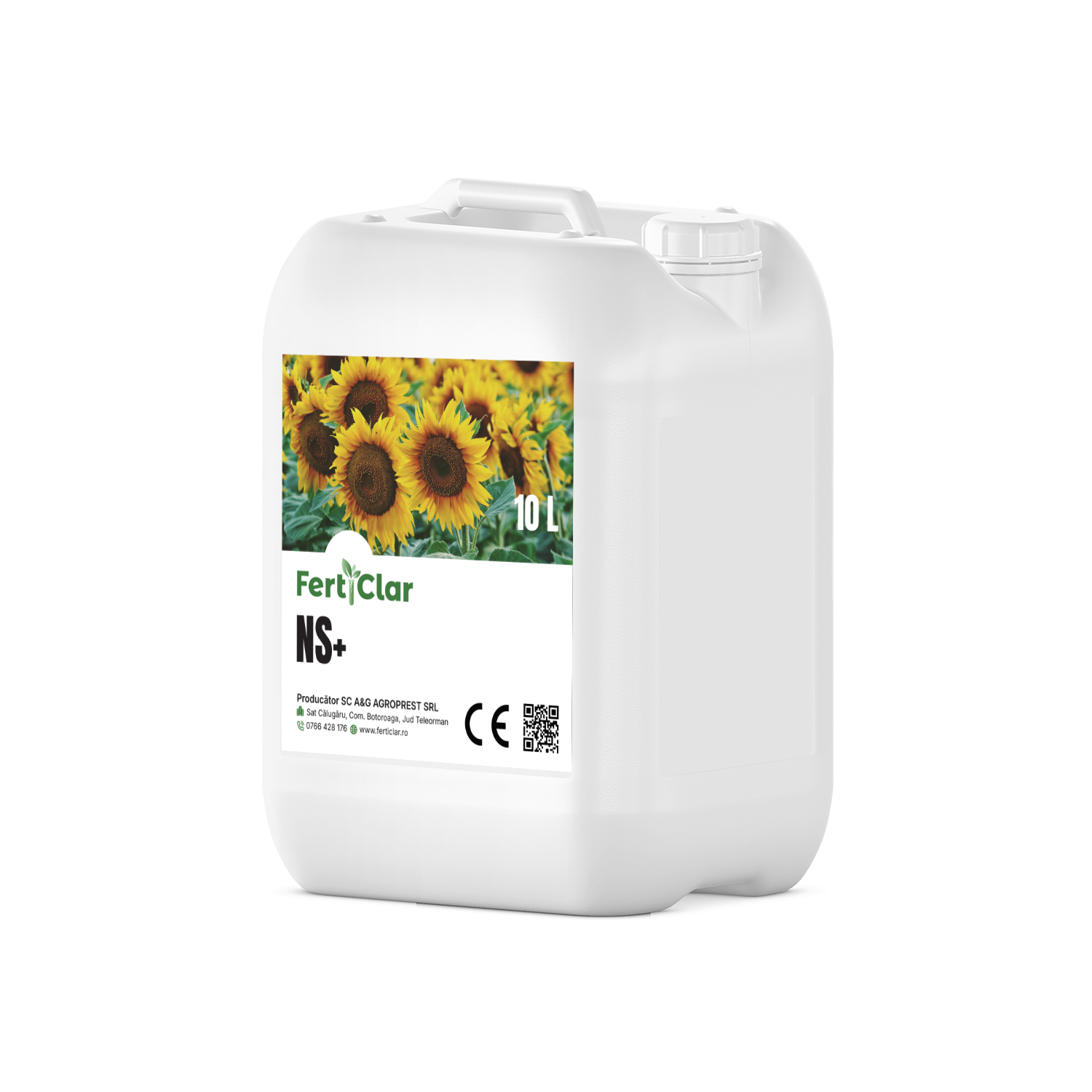 Produsul FertiClar NS+ este un fertilizant lichid, incolor spre galben, fluid, miros de amoniac, cu un pH de 6,5-8,5 unit., o densitate de aproximativ 1,31-1,33 kg/L, cu conținut mic de clor și de cadmiu.
